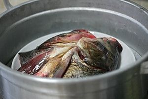 两斤左右的胖头鱼头一个,一定要新鲜,最好是刚杀的,挖腮洗净,用盐均匀的涂抹鱼的正反两面,然后取一盆,倒入料酒,醋,生姜,腌制5-10分钟