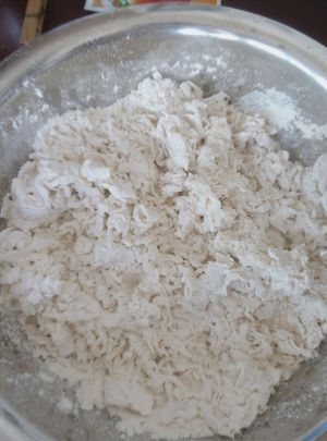 700克馒头自发粉加350克30度温水和面,分三次加,边搅拌边加!