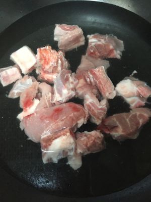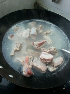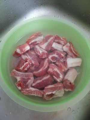 排骨洗净,开水煮一下,放入料酒姜片煮好后备用。