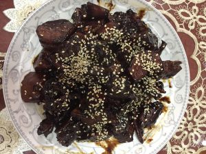 出锅,撒点白芝麻上去。虽然卖相欠佳,但是味道还是不错的!