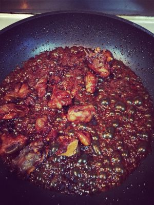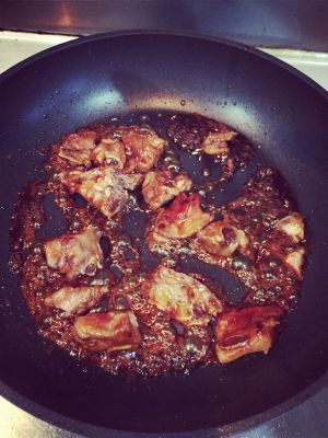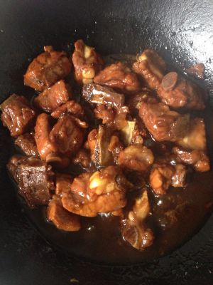 炒到收汁,再炒一会儿,炒出排骨的香味和油