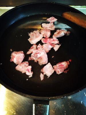 放水煮沸,要放热水,再滴几滴醋,这样肉比较入味易烂好吃,有的朋喜欢放冷水,但依照多年经验爆炒后的肉或排骨放冷水容易缩掉,不容易烂,不太入味。水开后换小火炖三十分钟以上。