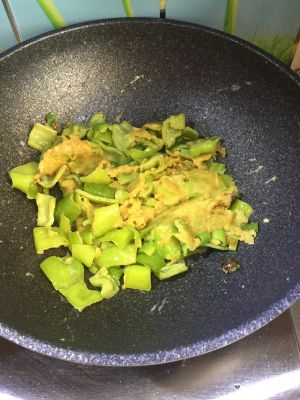 倒入炒好的鸡蛋,翻炒均匀即可关火、出锅。喜欢辣这是可以加点辣酱