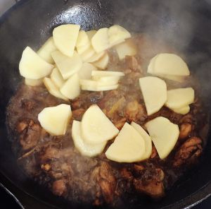 煮开后,中火煮,直至汤变浓稠,加入土豆片