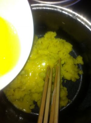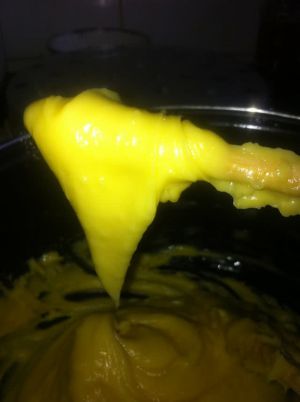 图一冷却到60度,中加入蛋液,分次少量加入搅拌
