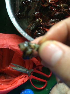 用牙刷刷干净虾,这是处理好的虾,满满的虾黄!看着都诱人