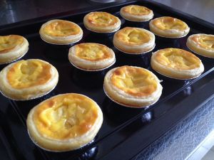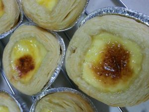 牛奶淡奶油炼乳糖放锅里加热,不要沸腾,只需温一下使之融化混合,等冷却加入打散的蛋黄液,即成蛋挞液