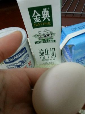 准备材料,鸡蛋两个,牛奶220毫升。白糖随意