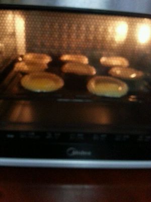 放入烤箱,最好是中间层,240度上下火25分钟,期间要看住哦,别烤糊啦,其实最好不要放在下面层,会糊底滴