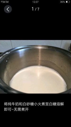 把纯牛奶、淡奶油、细砂糖,炼乳放入干净的容易用手动打蛋器,搅拌至糖融化,混合均匀,也可以用微波炉叮几秒钟加快糖融化!