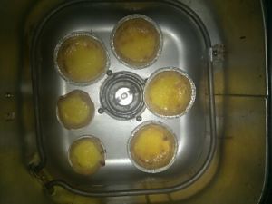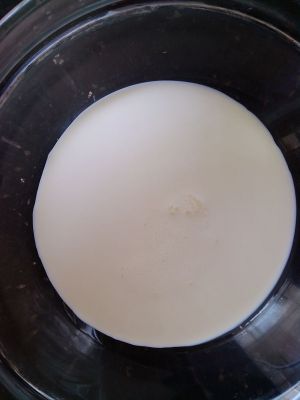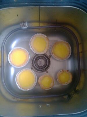 倒入七成满挞液,放入面包机底部,烘焙35分钟,烤箱的话烤二十分钟,200℃。