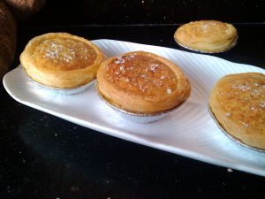 蛋挞皮:一是可以买现成的蛋挞皮,一个大约1元;二是用飞饼加工,一张飞饼可做六只挞皮,每只成本两角左右。飞饼解冻,撒面粉后卷成卷,放案板上用手搓紧搓长,切成十二等分,像擀饺子皮一样两份放一起,擀饺子皮大小。铺放入挞托里。三是自己用生面饼包裹黄油,反复叠和擀,做千层稣皮
