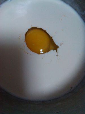 蛋挞液:按配方份量把蛋黄,牛奶,酸奶,白砂糖,炼乳,玉米淀粉放入容器,搅匀。如果希望有点油,可以把十克黄油融化,倒入后搅匀