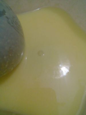 蛋挞皮解冻大概二十分钟左右,这时间就来制作蛋挞液,将蛋黄,牛奶,白糖,炼乳倒盘里用打蛋器搅拌到糖融化然后过筛。