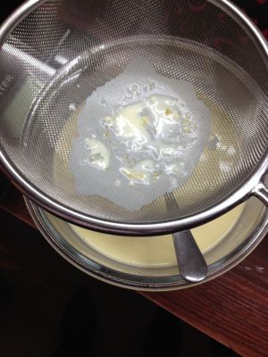 把搅拌好的蛋挞液筛一下!这样做的蛋挞会更细腻!