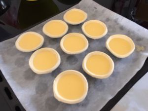 忘记拍倒挞水的过程了,买的蛋挞皮,将蛋挞液倒进挞皮中,七分满即可,不然膨胀会溢出不够美观。放进烤箱,210度左右,下火20分钟,上火10到15分钟。