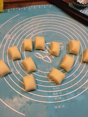 第十六步:把卷好的面皮卷切成1cm长的小剂子。