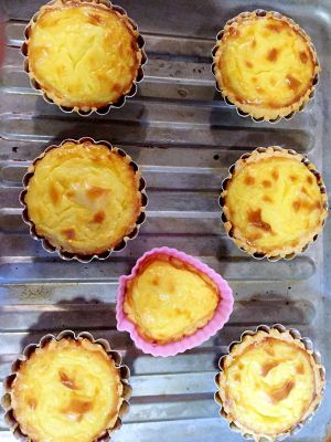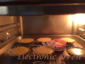 第二十六步:烤箱220度预热10分钟,然后把蛋挞放入烤箱,烘烤25-30分钟即可出炉。