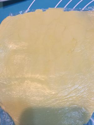 第八步:把黄油擀成薄片,(0.3cm)放冰箱冷藏15分钟。