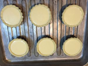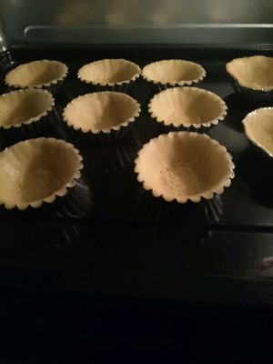 烤箱预热170度12分钟拿出来,倒入挞液继续烤15分钟