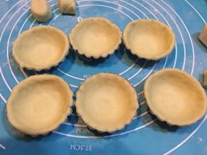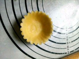 把蛋挞模具放下边,隔着保鲜袋压出一个挞皮