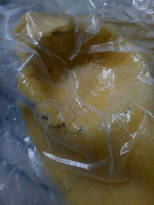 第十九步:榴莲肉加适量牛奶放入搅拌机中打成榴莲泥。