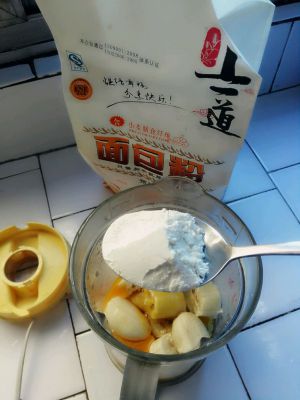 鸡蛋中加入盐、黄酒、味精,打匀。
