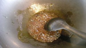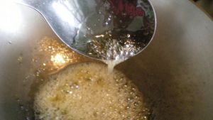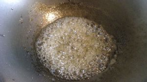待油糖成浆糊状,立即关火