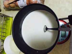 将牛奶、炼乳、糖一起倒入器皿中搅拌,由于加入的砂糖呈颗粒状,为了使糖更快溶解,放到火上加热一下,一定要小火,不要将牛奶煮开。搅拌倒砂糖彻底融化后关火。