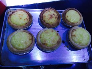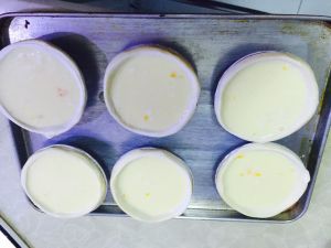 准备好后我们就可以把蛋挞液倒入蛋挞皮中!不要倒太满哦!