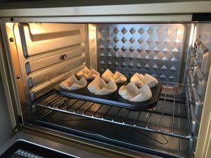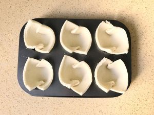 蛋挞皮摆好,电烤箱预热10分钟(上220°,下220°),备好材料待用。