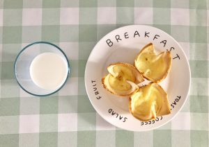 我准备了六个挞心的量。一个鸡蛋,150ml纯牛奶,糖20g。(我不喜欢太甜,糖放的少)