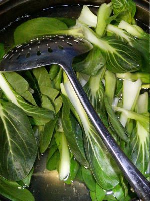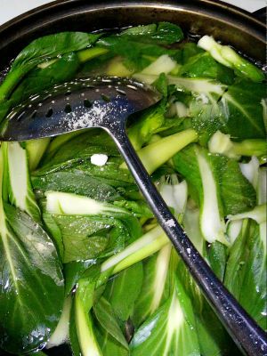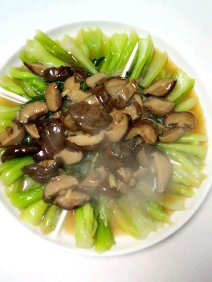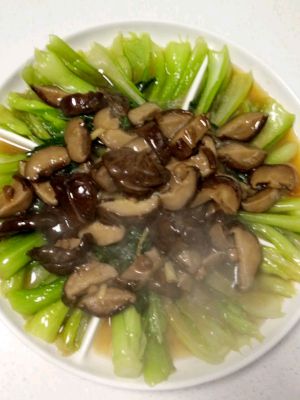 锅中烧开水,放入香菇和小油菜,香菇烫3分钟,小油菜烫1分钟,捞出装盘
