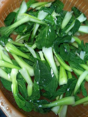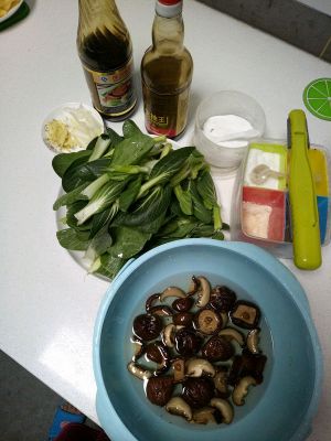 泡发香菇,洗净油菜,香菇泡好后也洗净,一会煮菜的水还有用