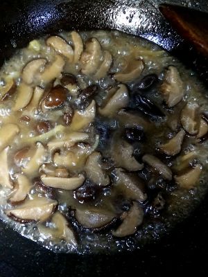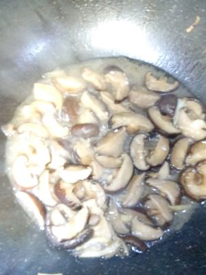 香菇也煮的差不多了,这时候放鸡精味精,用水淀粉勾芡