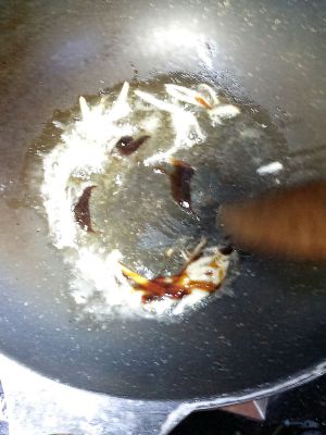 锅里倒油,烧热,放入葱,姜,干辣椒翻炒!