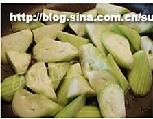 加入少许盐,转中火慢慢翻炒,至丝瓜变软变透明