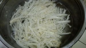 锅内放入水煮开放入金针菇煮3分钟捞出沥干水分
