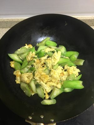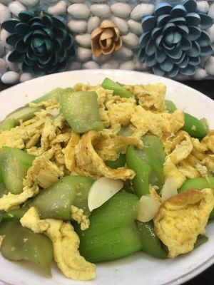 锅内倒油,油热倒入丝瓜,丝瓜软后加入蛋,加少许盐,酱油。