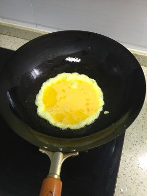 锅烧热,把蛋倒入锅中,蛋熟盛出。