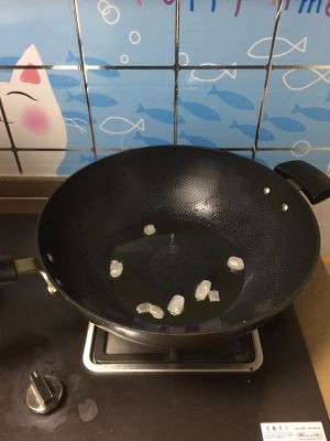 热锅倒油,等油热了放入冰糖,小火开始炒糖色。