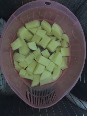 土豆去皮切块,用水泡着备用。