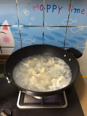 锅里添水,等水开后将鸡腿和姜片一起煮1-2分钟,以去掉血和腥味以及脏东西。
