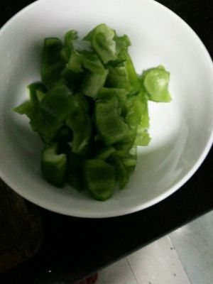 等到土豆也变色,加入青椒和胡萝卜,翻炒一下即可出锅