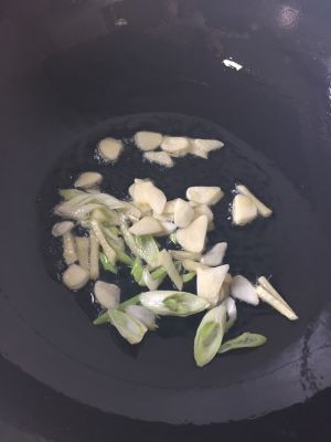 1.锅中重新倒入新油,温油时放入切好的葱,姜,蒜; 2.爆出香味后,放入适量豆瓣酱(根据个人口味轻重)炒香。