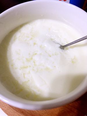250ml全脂牛奶加5克糖融化加热到四周冒汽泡,再加入一小勺奶粉(可以不加),关火,冷却到70度左右,从高处冲下,加盖闷5分钟左右