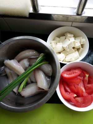 2个番茄洗净去皮,切小块备用。豆腐也切小块备用。