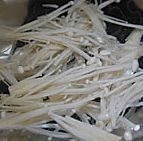 金针菇抄水控掉水份!水开后放入菇大约半分到一分钟就可以!