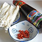 枸杞用冷水泡发备用。金针菇去老根用冷水浸泡2小时