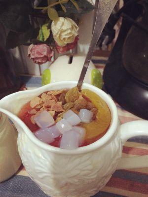 最后成品上可以放上自己喜欢的水果或是其他自己觉得好吃的东西 但是单单吃也是很不错的!